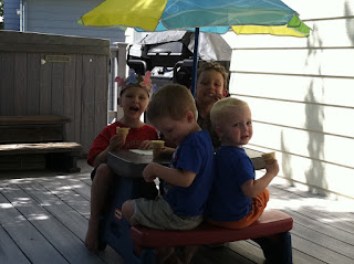 Emmett is seeing a Neurologist! We are trying to figure out why his gross motor is so delayed. He can't walk down the stairs yet, and he didn't walk until 18 months, and he still moves his head from side to side in a rhythmic motion. We did an MRI of the brain, and everything looked normal. The pediatrician also thought he might have some slight CP, but the Neurologist cleared him for that as well.